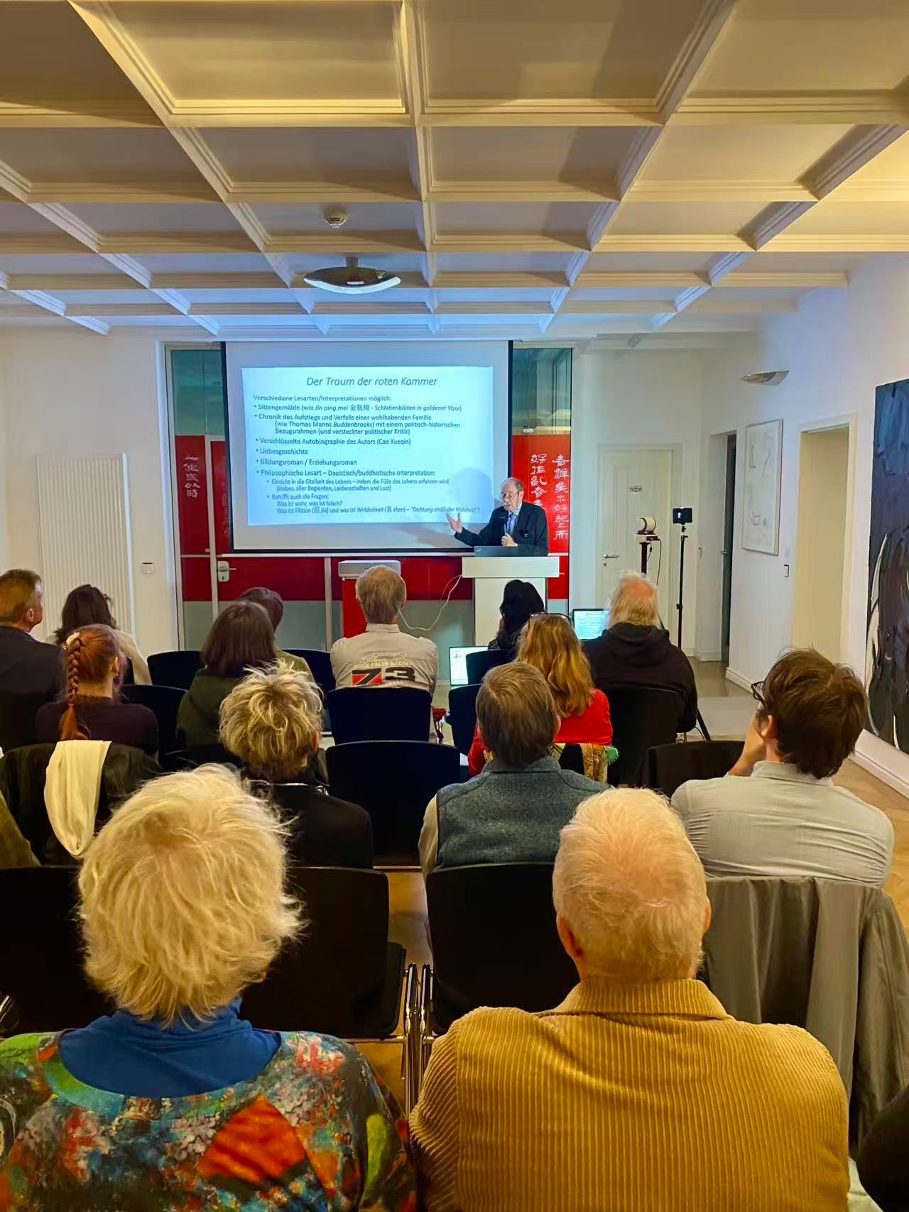 当地时间9月23日,纽伦堡-埃尔兰根孔子学院邀请德国著名汉学家卜松山 (Karl-Heinz Pohl) 教授,举办了一场以 “从佛教角度解读《红楼梦》” 为主题的讲座,活动吸引了约60位线下及线上的中国文学爱好者参加。