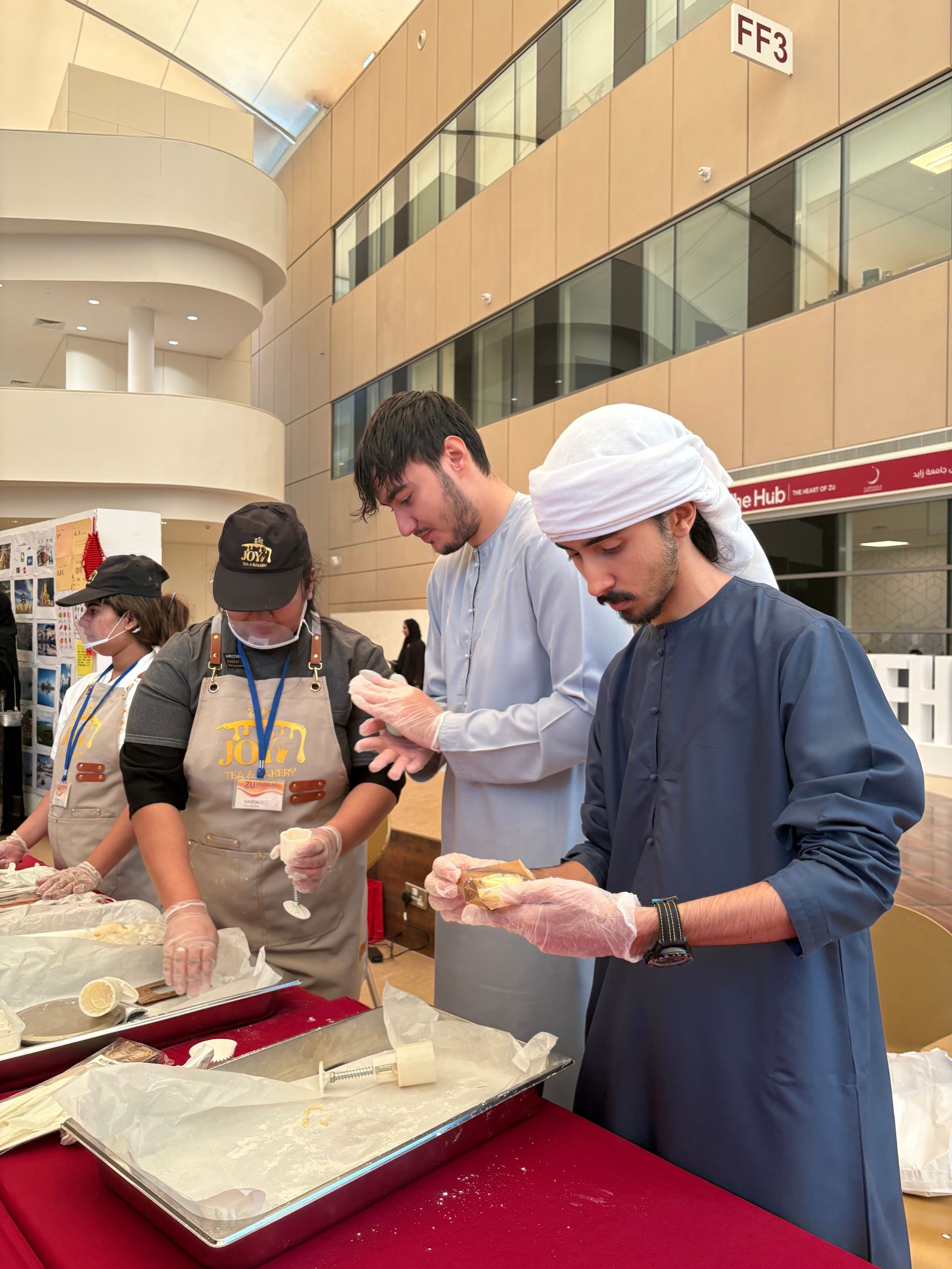 当地时间9 月 24 日,扎耶德大学孔子学院举办孔子学院日庆祝活动。京剧表演、趣味汉字、乒乓球互动、吹墨梅花、冰皮月饼制作等多元文化体验吸引了200余名师生参与。