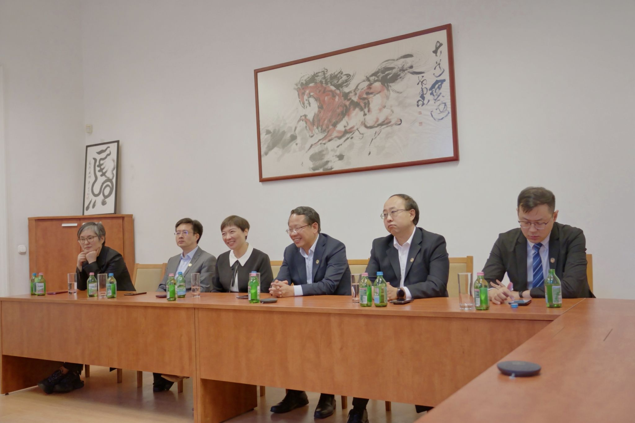 当地时间9月25日,北京邮电大学(以下简称“北邮”)校长徐坤率代表团访问匈牙利罗兰大学。罗兰大学副校长詹普林·盖博(Dr. Zemplén Gábor)教授和匈牙利科学院院士、罗兰大学亚洲事务专员郝清新(Dr.Imre Hamar)教授共同会见了代表团一行。罗兰大学孔子学院中方院长李登贵、罗兰大学国际处处长竹馨(Eszter Knyihár )等陪同会见。