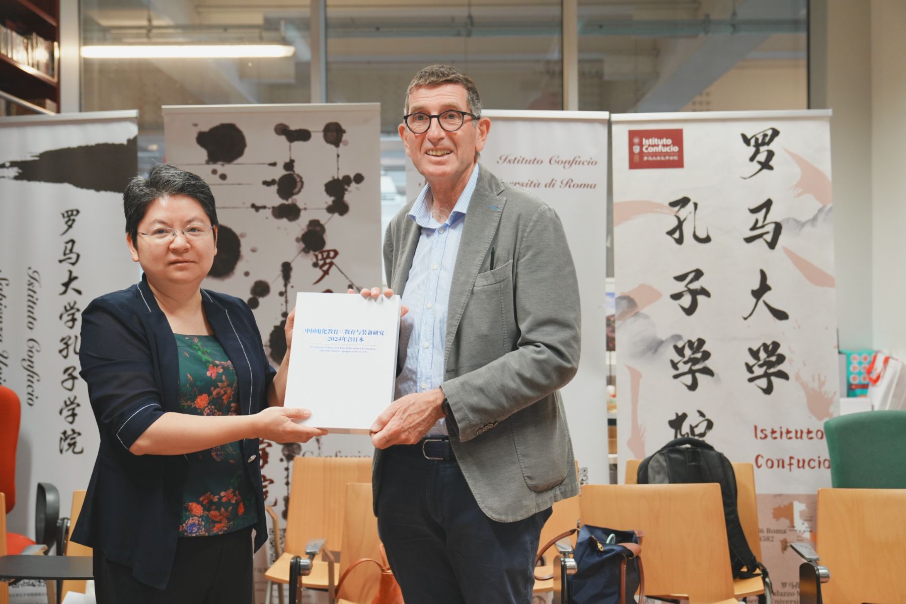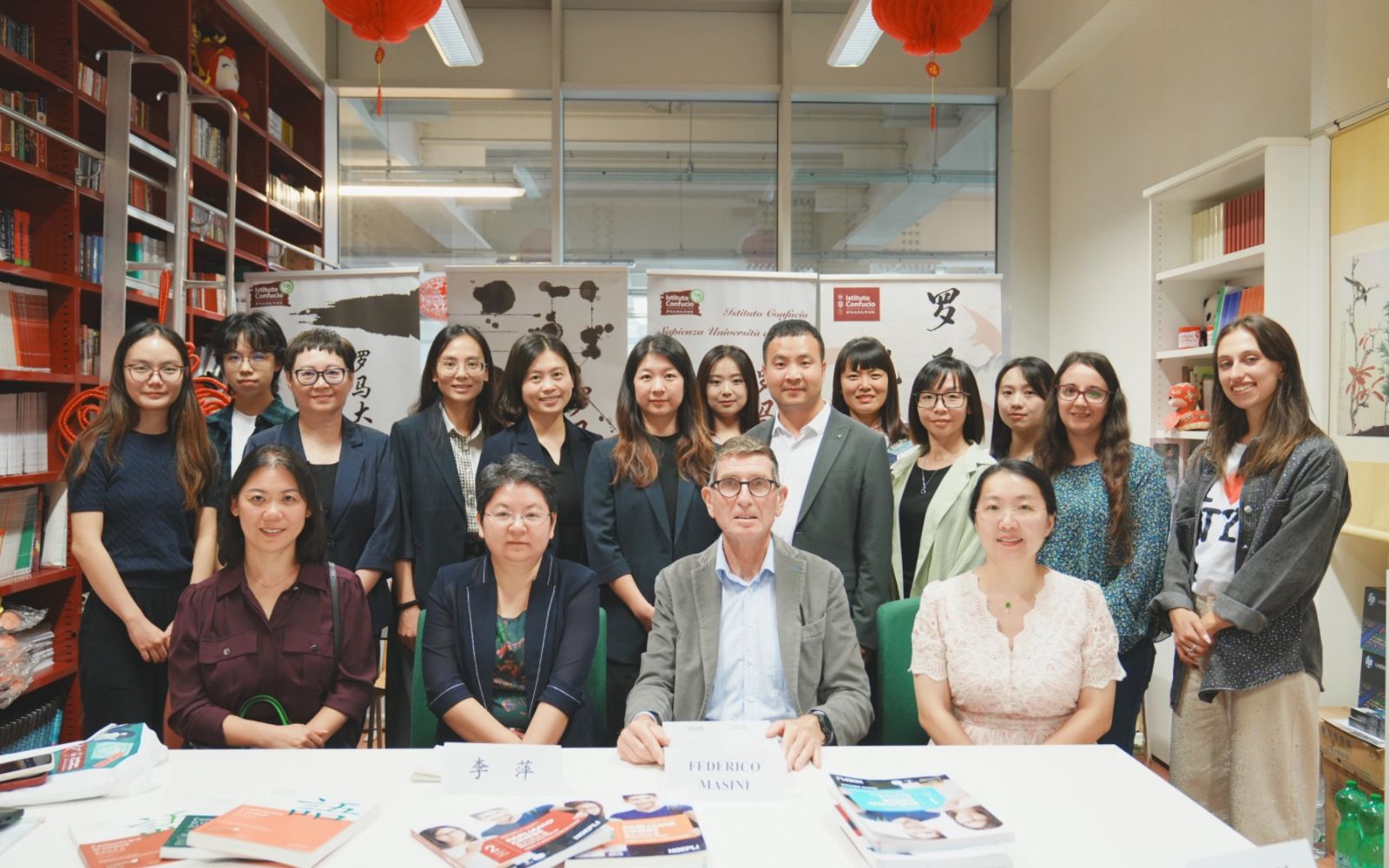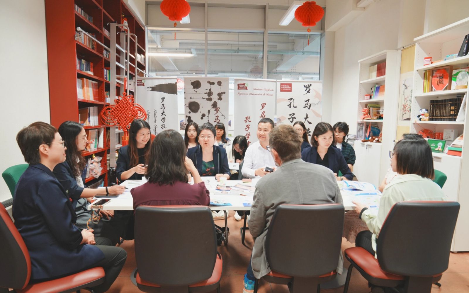 当地时间9月25日,教育部教育技术与资源发展中心(以下简称“教育部资源中心”)代表团访问罗马大学孔子学院。代表团由教育部资源中心主任李萍率队,成员包括社长蒋宇、处长张雪、副处长陈群、副主任雍文静。中国驻意大利大使馆教育处国际中文教育事务负责人李阳、罗马大学孔子学院意方院长马西尼(Federico Masini)、孔院办公室秘书朴敏佳(Michela Pranzo)、实习生孟娜西(Claudia Magnanensi),以及孔院部分公派教师、志愿者教师参加本次座谈。