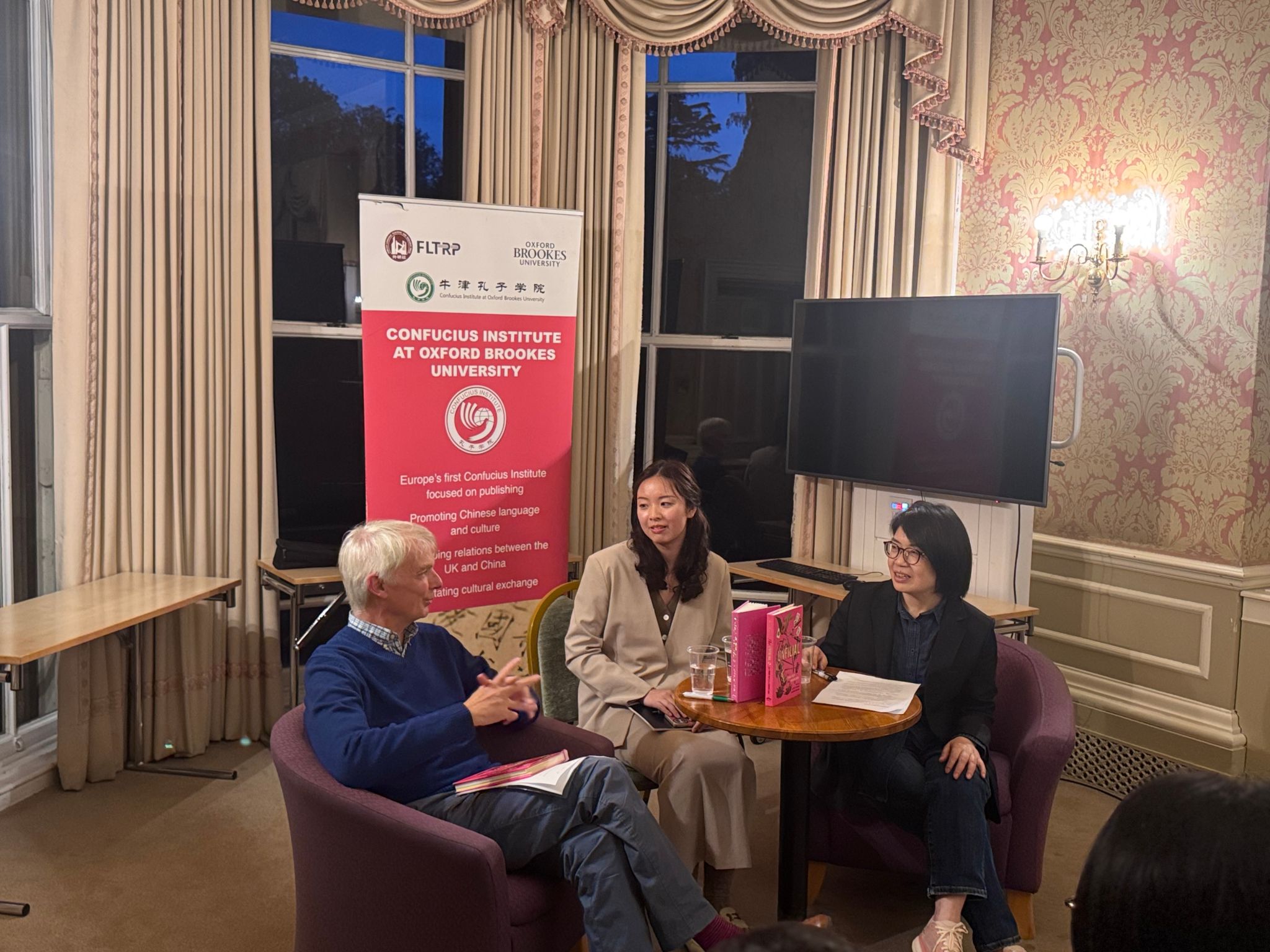 现场观众就创作动机、人物塑造及翻译策略等话题进行了积极互动。活动结束后,牛津孔院为来宾准备了月饼与茶点,嘉宾与读者在轻松的交流中共度中秋佳节。