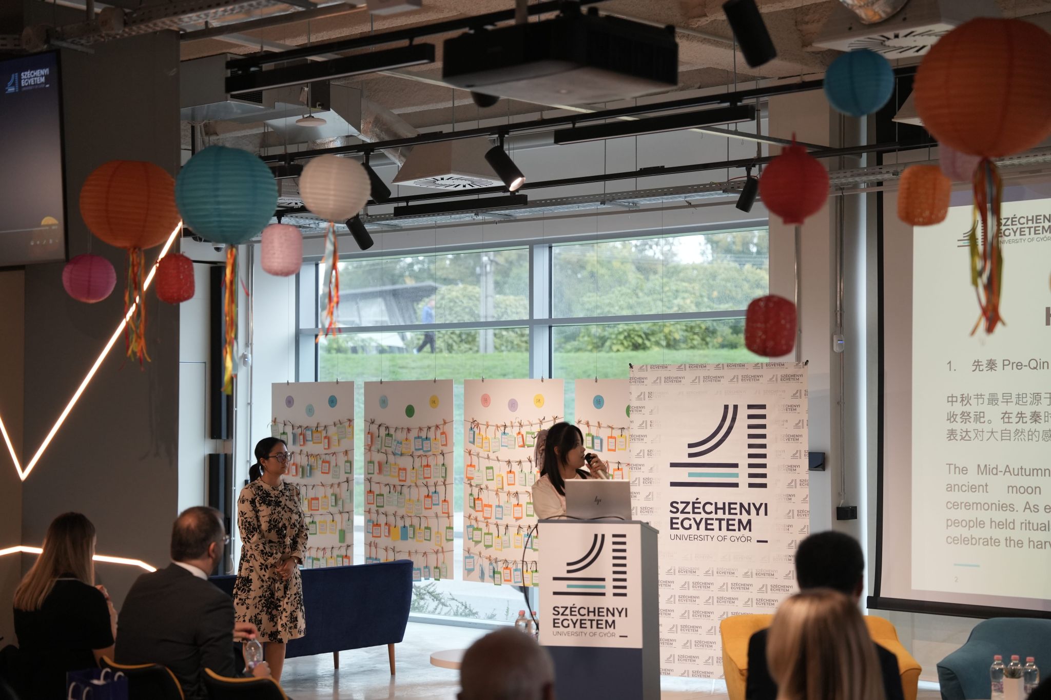 当地时间 10 月 7 日,匈牙利久尔市(Győr)的塞切尼・伊什特万大学(Széchenyi István University),举办中秋节庆祝活动。此次活动由塞切尼・伊什特万大学语言中心主办,罗兰大学孔子学院下设塞切尼・伊什特万大学教学点协办,吸引该校师生及当地中文爱好者100余人参与。