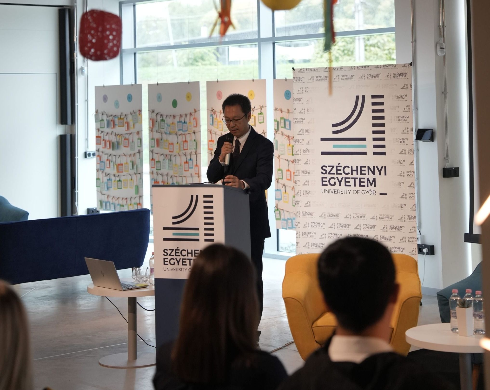 活动致辞中,塞切尼·伊什特万大学副校长卢卡奇·艾斯特(Dr. Lukács Eszter)肯定了活动对中匈友好互动的起到的积极作用,中国驻匈牙利大使馆一等秘书刘华借中秋节的文化内涵,表达了希望加深两国人民情感联结的愿望,外交与对外经济关系部 格朗尼雅克•盖尔盖伊(Granyák Gergely) 期待举办更多此类活动助力中匈多领域合作。