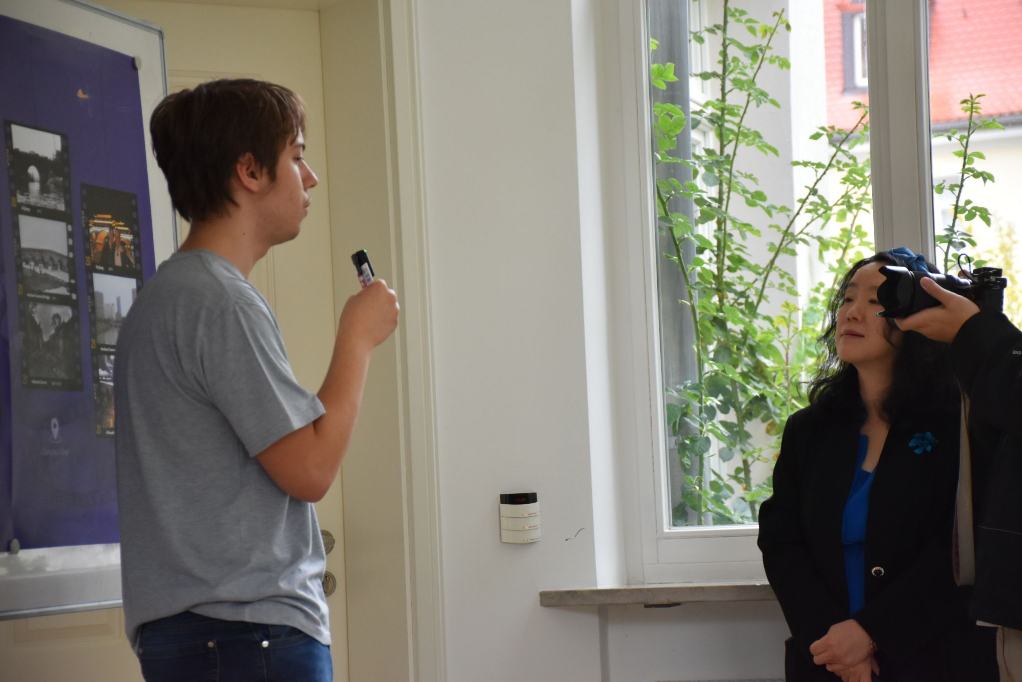 当地时间10月10日,纽伦堡 - 埃尔兰根孔子学院举办纪录片放映活动,展映作品为成都市广播电视台(Chengdu TV)旗下新媒体平台 “成都 +”(Chengdu Plus)拍摄的《穿越百年的影像集》。出席活动的嘉宾包括成都市广播电视台党委委员、副总编辑邱力,国际传播中心主任孔菁,文体旅传媒中心主任王承春,以及国际传播中心编导张骏铭。