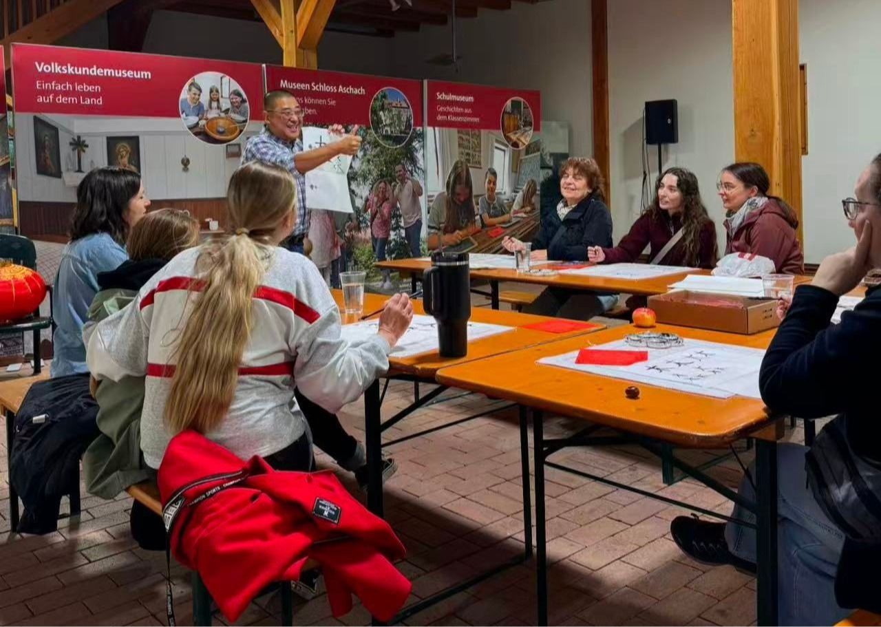 书法体验区同样人气高涨,纽伦堡孔院的孟德宏老师现场挥毫,为观众书写中文名字与节日祝福,笔走龙蛇、墨香盈室,赢得阵阵赞叹。不少观众也亲手体验,在一撇一捺间感受东方文字的韵律与温度。