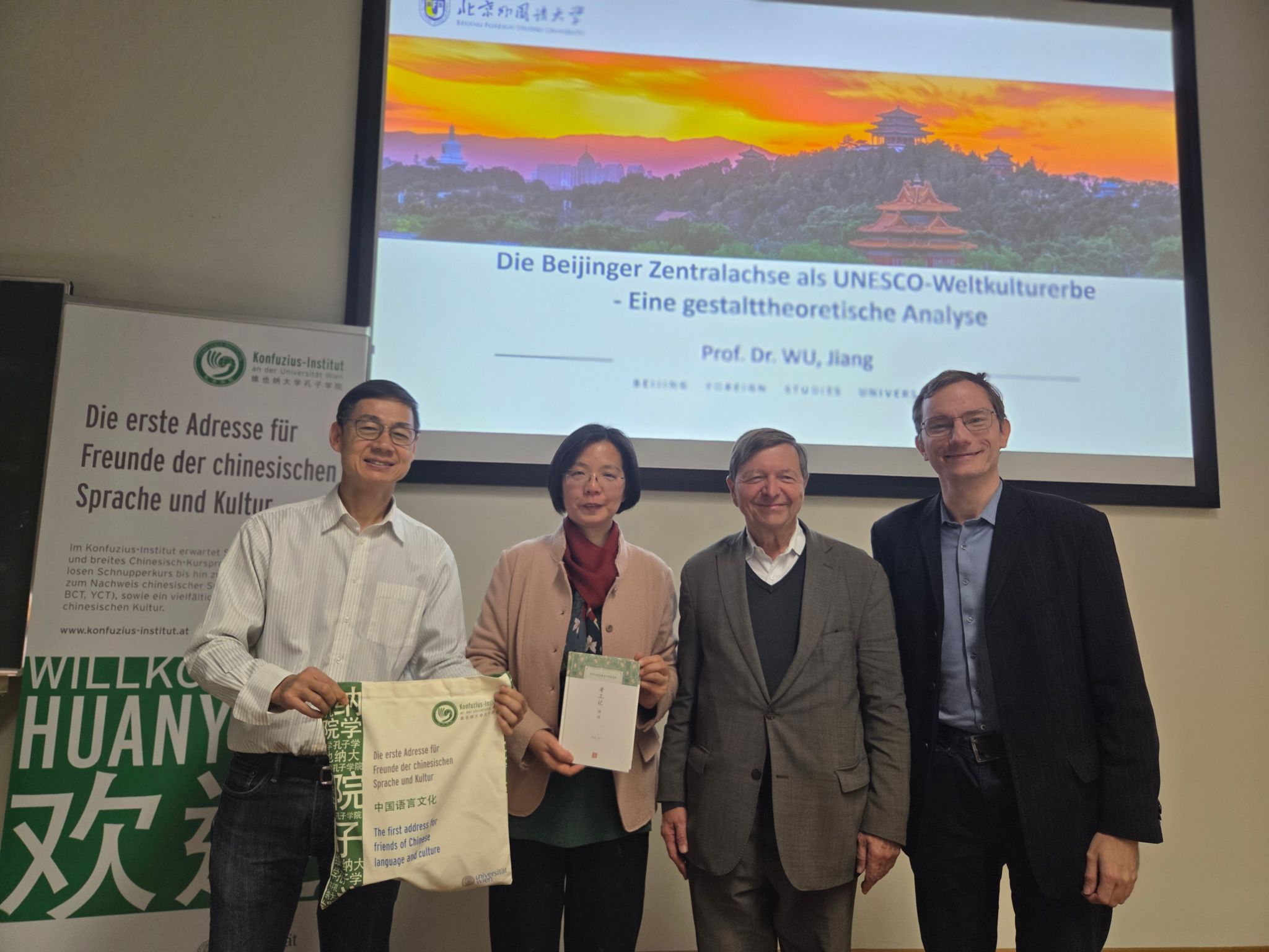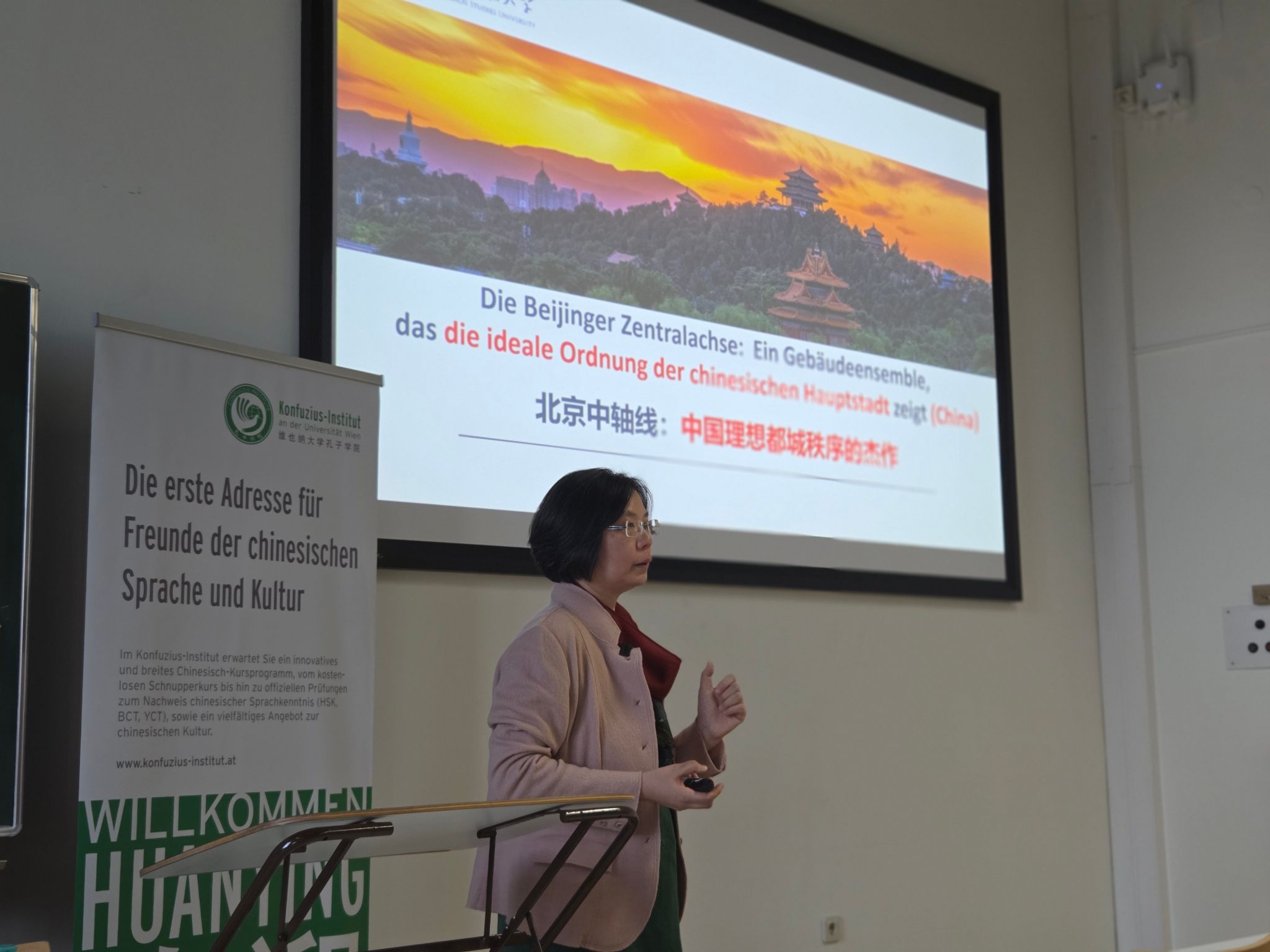 当地时间10月3日,北京外国语大学德语学院吴江教授应维也纳大学孔子学院邀请,在维也纳大学主楼进行题为“基于格式塔理论的世界文化遗产-北京中轴线分析”的学术讲座,20人到场参加。