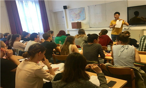 说明会上,罗兰大学孔院汉语教师冯光对奖学金项目的类别、申请条件、遴选办法以及报名程序等做了详尽的介绍,并逐一回答了学生的提问。汉办奖学金项目按学习时间长短分为五大类,分别为汉语国际教育专业硕士、汉语国际教育本科、一学年研修生、一学期研修生及四周研修生。四周研修生项目中,今年新增中医、太极文化培训与“汉语言+中国家庭体验”学习实践课程,这也是今年最受学生欢迎的奖学金项目。