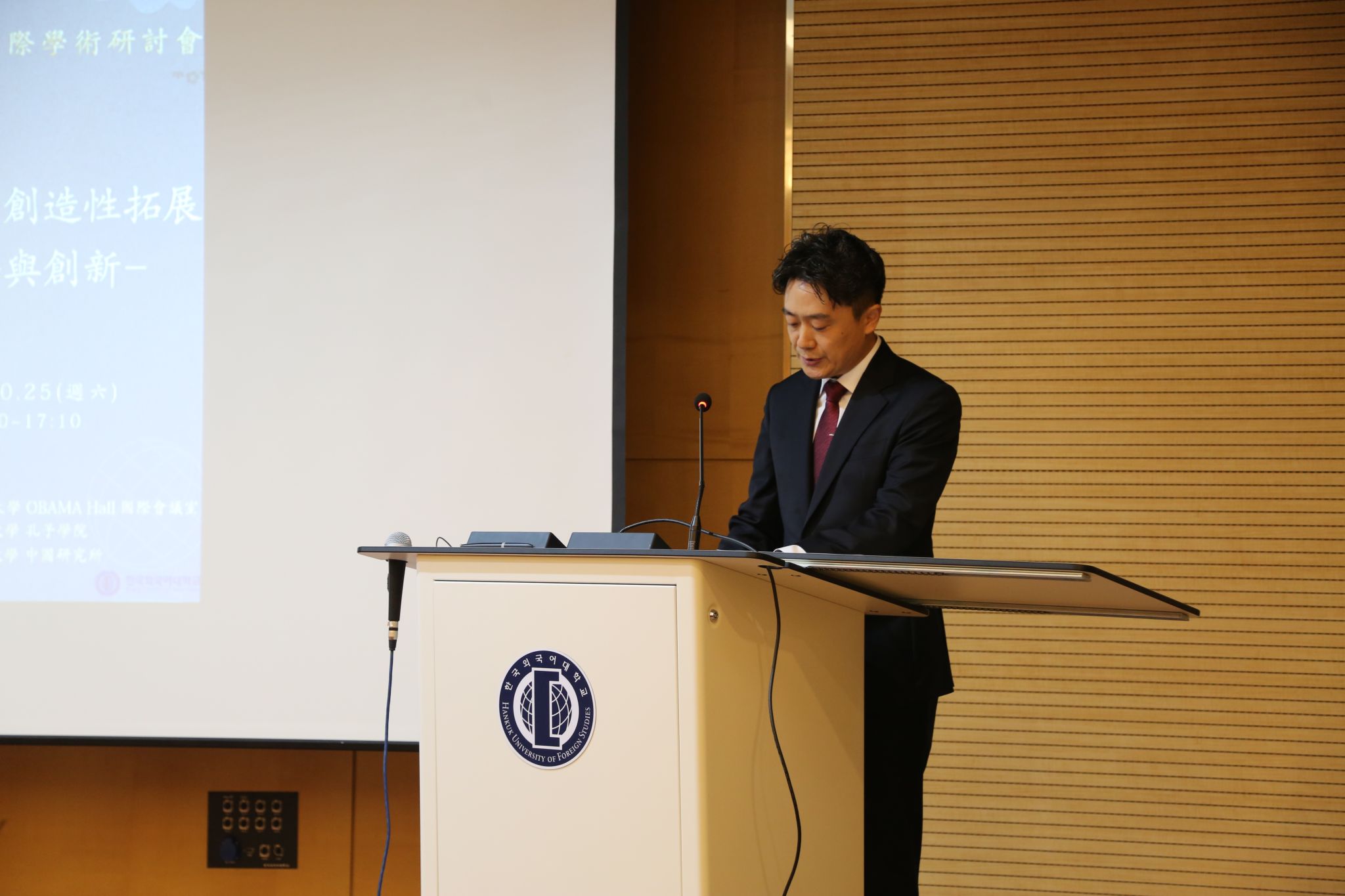 随后,韩外大孔院韩方院长、中国学院院长罗敏球、延边大学教授李宝龙、黑龙江外国语大学教授陈一、台湾师范大学教授胡衍南、青岛滨海学院教授金鹤哲、中正大学教授曾若涵、台湾师范大学教授林佳蓉、浙江越秀外国语学院何海翔、韩国外国语大学荣誉教授朴宰雨先后上台致辞,表达对于本次学术研讨会的期待与肯定。