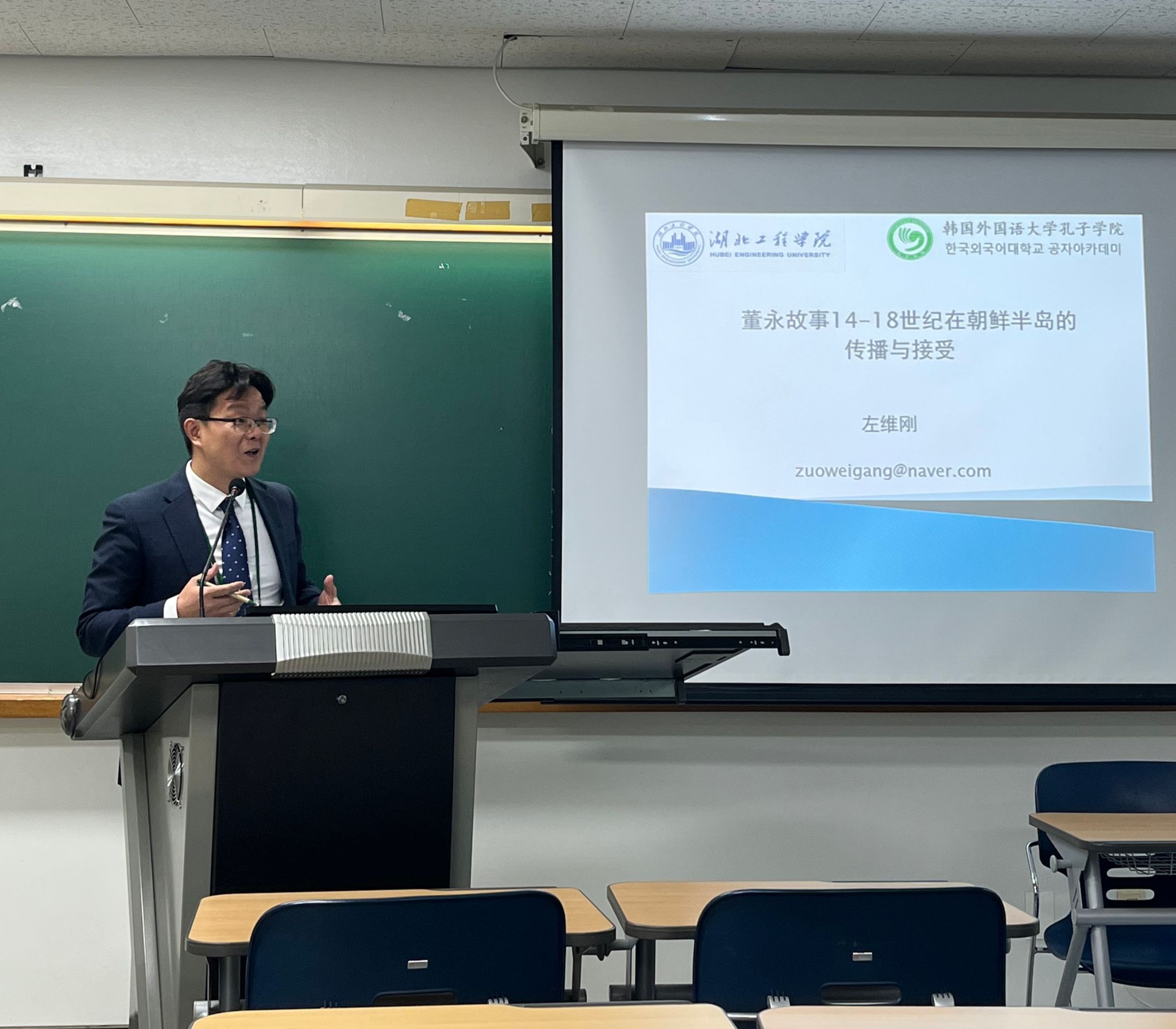 会上,左维刚作了题为《董永故事14-18世纪在朝鲜半岛的传播与接受》的学术报告,梳理了中国的传统孝故事“董永故事”在朝鲜半岛的文献脉络,分析了不同时期董永故事的文本、图像特征及董永故事在朝鲜半岛的接受与影响,并指出了14-18世纪董永故事的朝鲜半岛传播对当下中国文化“走出去”的参考意义。