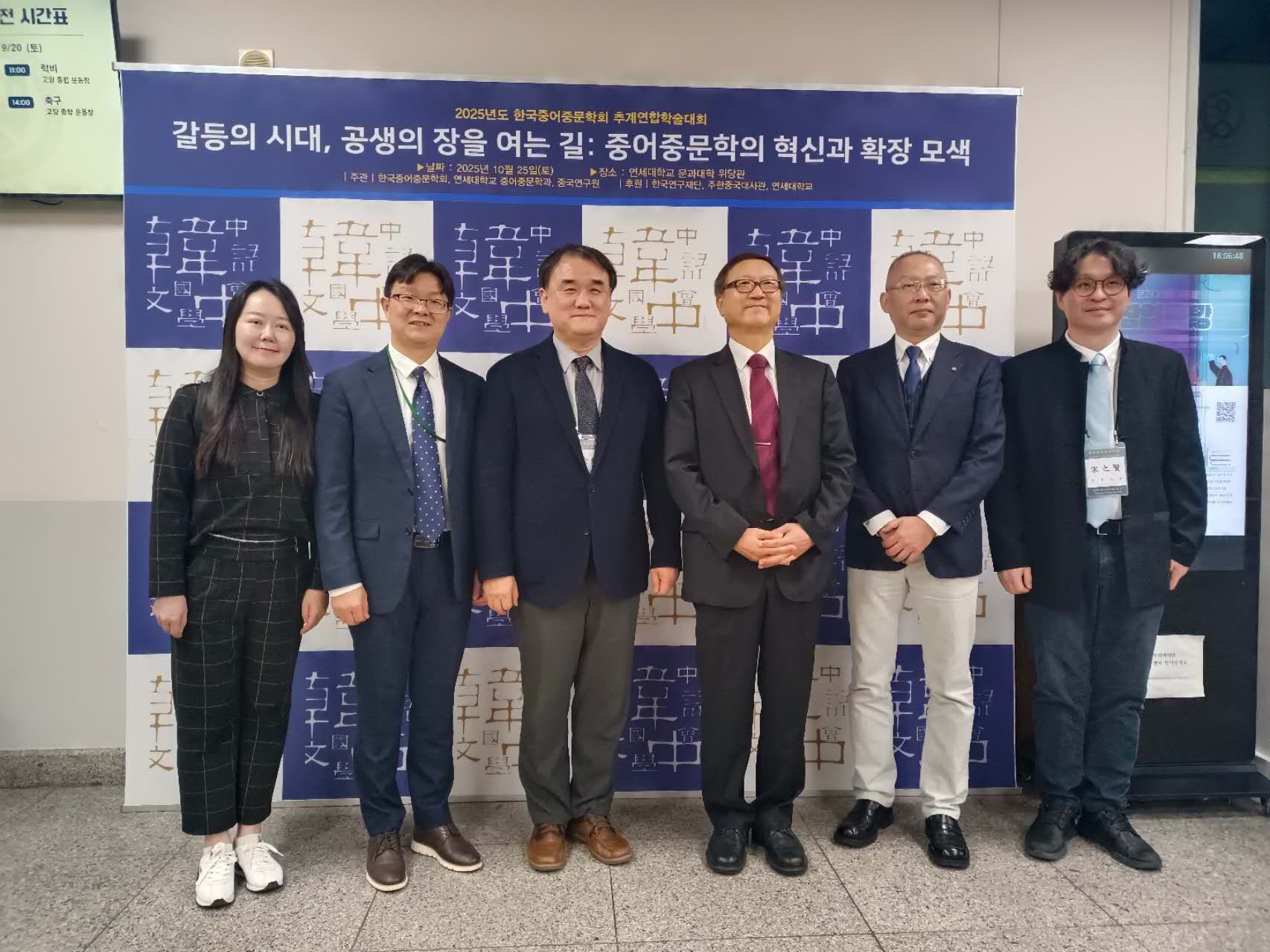 当地时间10月25日,韩国外国语大学孔子学院公派教师左维刚博士应韩国中语中文学会邀请出席了在延世大学举行的“2025年度韩国中语中文学会秋季联合学术大会”。本次会议主题为“在冲突的时代,开启共生之道:寻求中国语言文学的创新与扩展”。会议由韩国中语中文学会会长、延世大学中文系教授金铉哲教授致开幕词,中国驻韩国大使馆戴兵大使视频致辞,来自延世大学、首尔大学、北京大学、四川大学等多所高校近200名专家学者参会。
