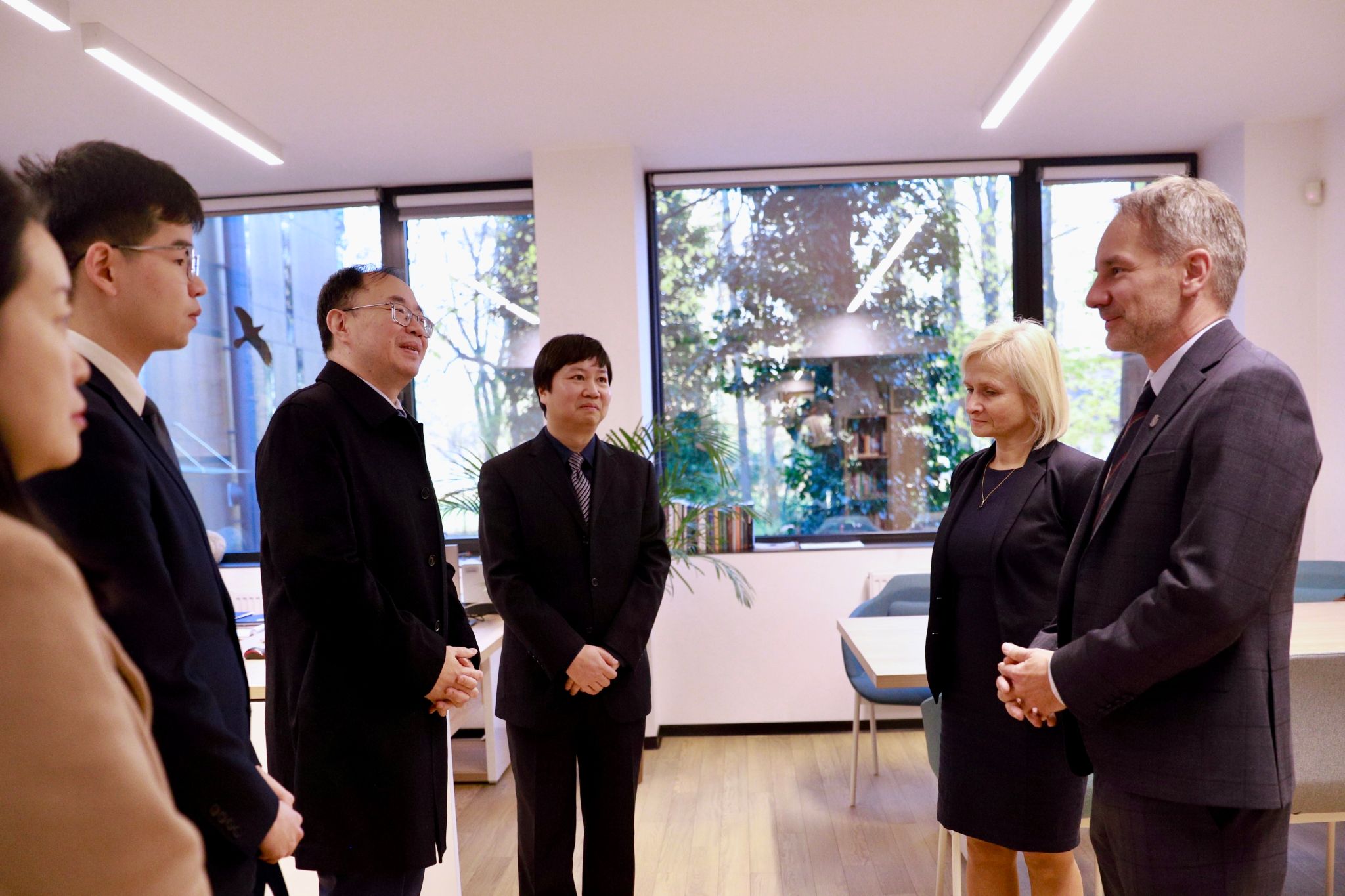在中方院长陈忠的陪同下,卢山与孔子学院隶属的雅盖隆大学近远东学院院长卢卡兹·费德里克(Lukasz Fyderek)教授进行了会面。卢山非常感谢近远东学院多年来对孔子学院工作的支持。费德里克介绍了近远东学院的发展状况,也希望卢大使在未来能够正式访问雅盖隆大学。