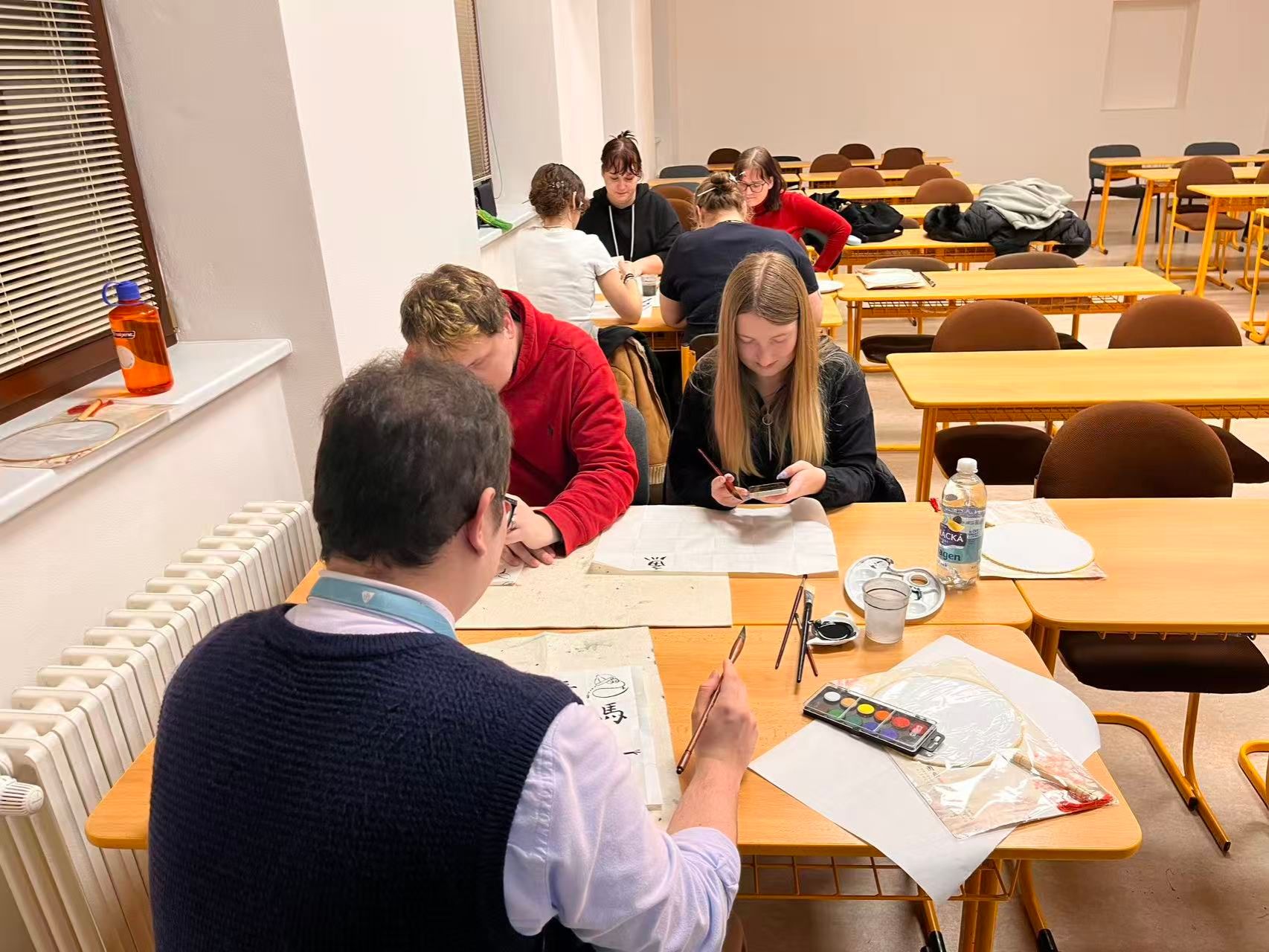 当地时间11月13日,奥洛穆茨孔子学院举行了秋季学期首次中捷双语角活动。本次双语角主题为“团缘绘梦、扇引清风”。
