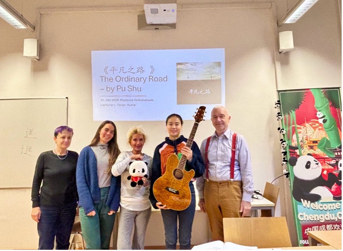 10月31日,维也纳大学孔子学院举办了主题为“现代民谣”的“学唱中文”工作坊。工作坊分为文化知识讲解和学唱体验两个环节,由孔院教师黄雅楠主讲。