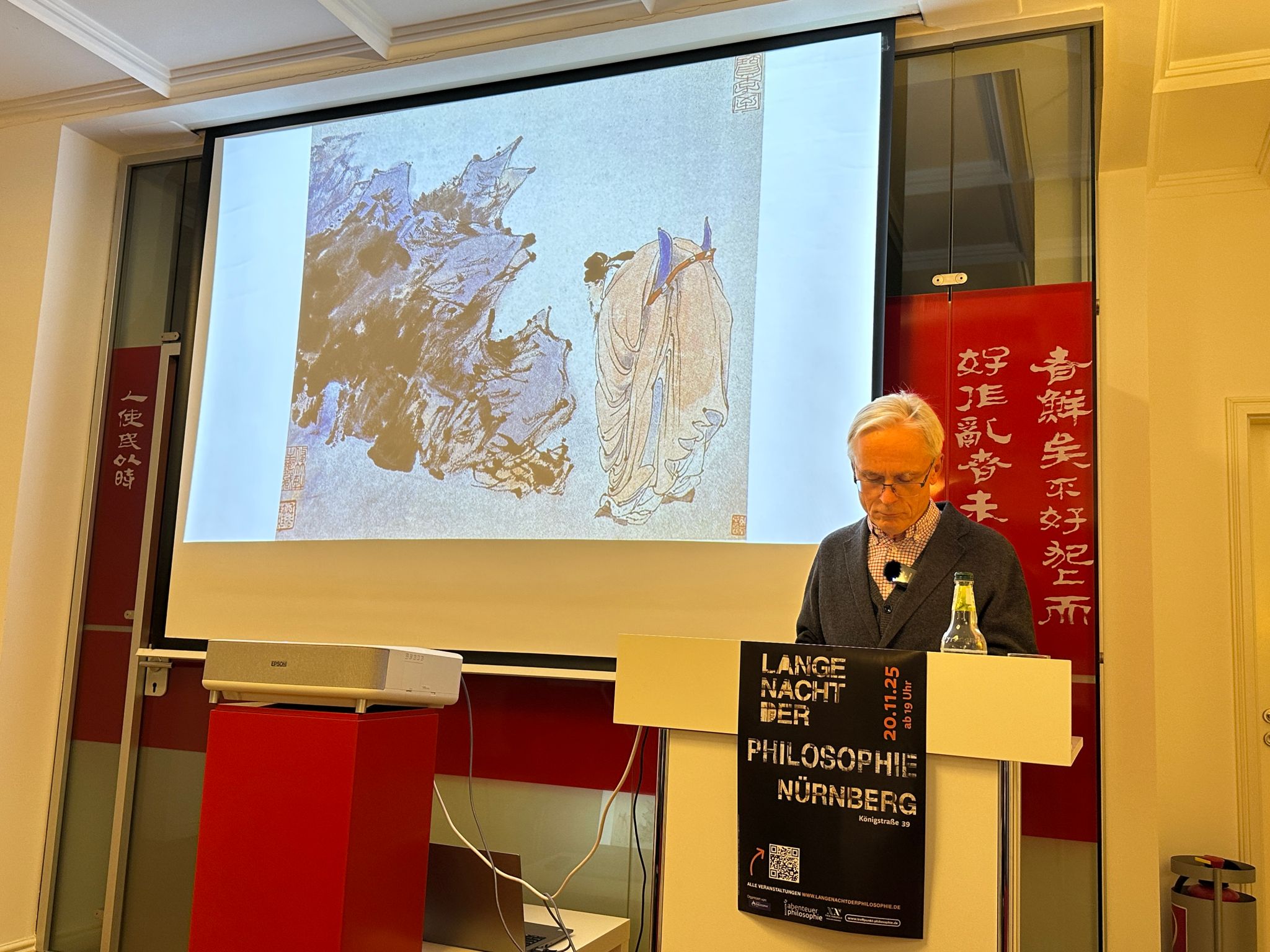 当地时间11月20日,纽伦堡-埃尔兰根孔子学院举办了由德国汉学家盖格博士(Dr. Heinrich Geiger)主讲的主题为“石头之外的哲学思辨”的哲学与美学讲座。作为“纽伦堡哲学长夜”(Lange Nacht der Philosophie Nürnberg)的重要活动之一。讲座采取线上线下结合的形式,共吸引了30位现场及线上观众参与。到场嘉宾中包括纽伦堡应用技术大学(Technische Hochschule Ohm)韦乃铭教授等,现场交流氛围热烈。