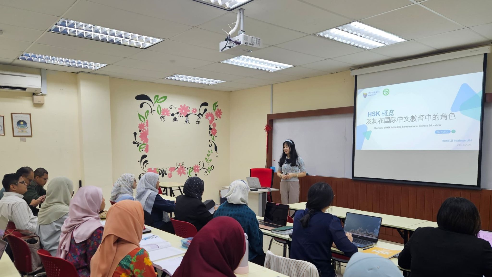 当地时间11月24日,马来亚大学孔子学院举办面向玛拉(MARA)高等技能学院25名教师的“HSK课程规划与教学培训”,本次培训为期两天。此次培训聚焦“HSK大纲下的标准化与本土化”,通过理论讲解、工作坊训练、小组协作与微型教学示范,帮助教师在系统理解HSK体系的同时提升课堂实操能力。