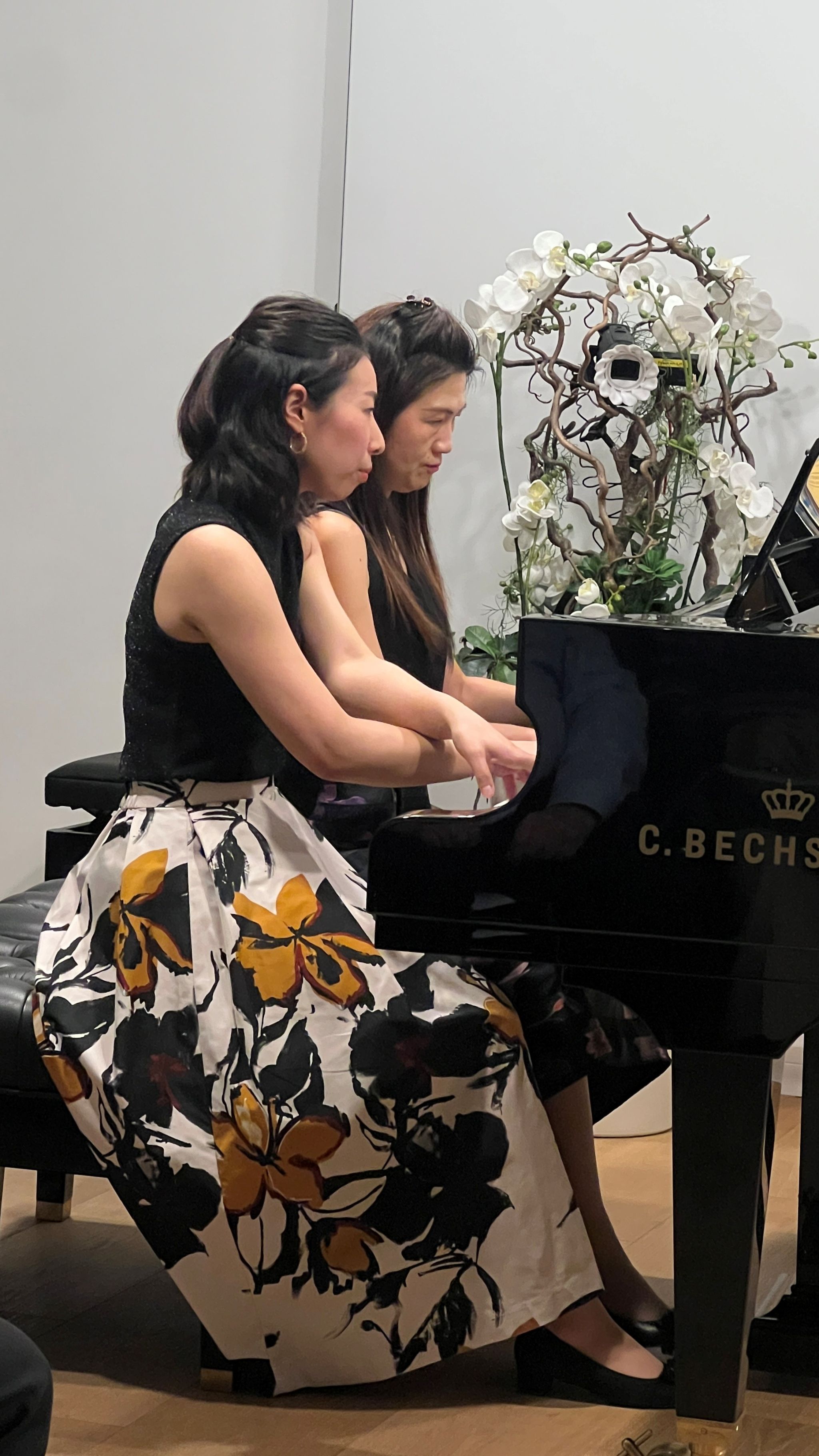 音乐会由钢琴家内海裕子(Hiroko Utsumi)与樊林林(Linlin Fan)联袂呈现。两位演奏家默契配合,共同演绎了巴赫、圣桑、拉赫玛尼诺夫、拉威尔与柴可夫斯基等作曲家的经典作品。演奏在不同风格间自如流转,既展现了四手联弹丰富的声部层次与和声魅力,也体现了演奏者之间高度默契的艺术对话。