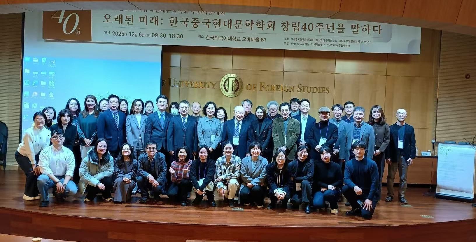 当地时间12月6日,韩国中国现代文学学会成立40周年纪念学术大会在韩国外国语大学奥巴马大厅成功举行。本次大会以“悠久的未来:韩国中国现代文学学会创立40周年”为主题,由韩国中国现代文学学会、韩国外国语大学中国研究中心、国立釜庆大学全球中华纪念研究所共同主办,并获得了韩国外国语大学孔子学院、中国学学院、德仁学术财团及韩国外大融合人才中心的大力支持,吸引了近70名专家、学者参加。