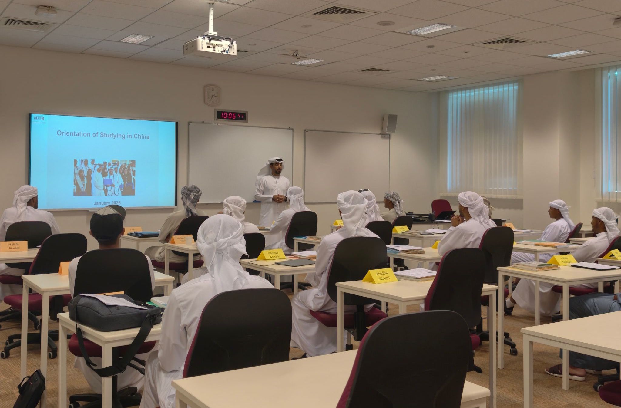 当地时间1月10日,扎耶德大学孔子学院与阿联酋总统事务部奖学金办公室(以下简称SCO)合作开展的第三期中文课程正式开课。作为双方持续推进的合作项目,本期课程在教学时长和内容设置上进一步优化,围绕SCO赴华留学培养计划有序开展。