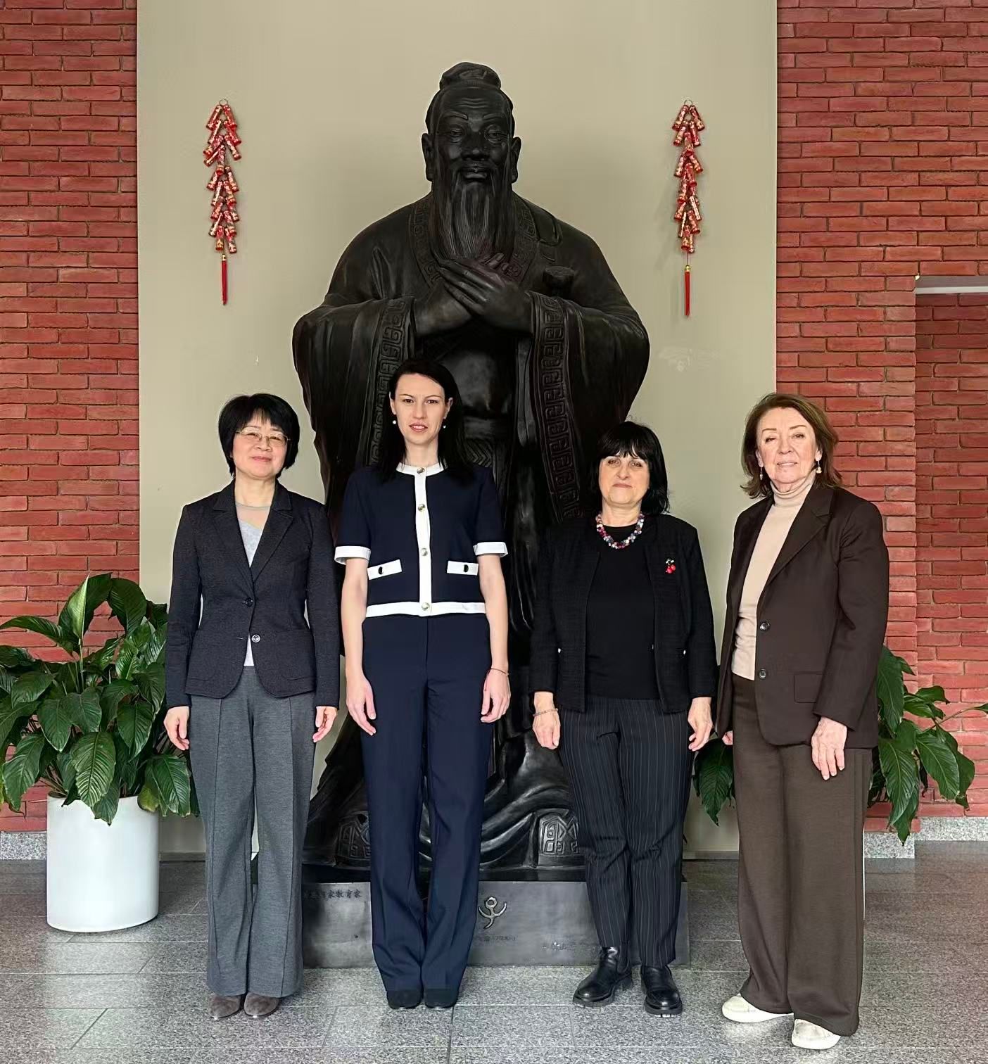 当地时间1月16日,“阿方斯·德·拉马丁”第9法语高中(The 9th French Language High School “Alphonse de Lamartine”,简称“第9法语高中”)校长西蒙娜·安格洛娃(Simona Angelova)、副校长迪阿娜·菲丹诺娃(Diana Fidanova)访问索非亚孔子学院。孔院保方院长阿克西尼娅·科列娃(Aksiniya Koleva)、中方院长陈瑛接待校长一行,双方就合作开展中文教学、举办文化活动等事宜进行了深入且富有成效的交流。