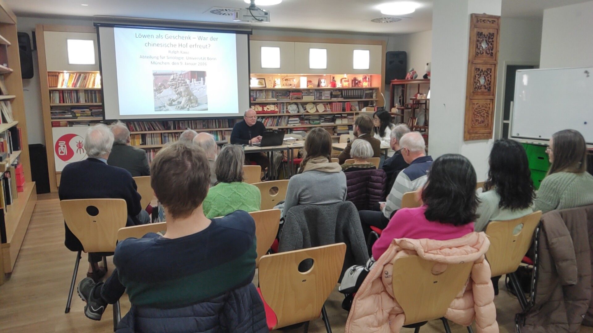 当地时间1月9日,慕尼黑孔子学院成功举办2026年度首场(总第216期)文化沙龙活动。本期活动特邀波恩大学汉学教授拉尔夫·考茨(Prof. Dr. Ralph Kauz)担任主讲,围绕“贡礼中的狮子:中国宫廷的接纳与疑问”这一主题展开深度学术分享。本次活动采用线上线下相结合的形式举行,吸引了现场观众及通过Zoom、YouTube等平台在线参与的多国文化爱好者。