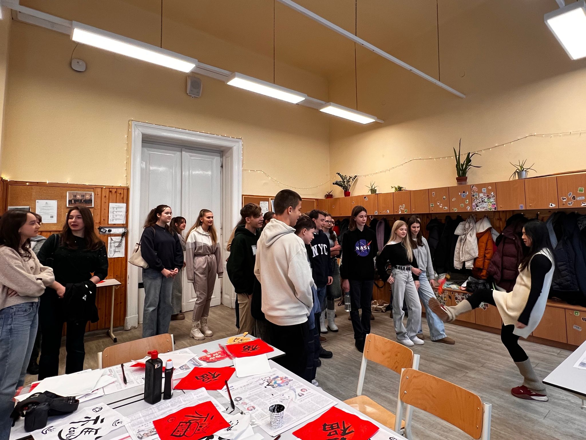 当地时间1月10日,罗兰大学孔子学院下设教学点特莱福中学(ELTE Trefort Ágoston Teacher Training School)举办春节文化活动,吸引了120余名学生参与。