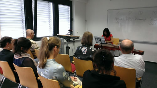 本次活动的压轴节目,是沙莎带来的古筝独奏。演奏每支曲目前,沙莎都用德语向听众介绍了曲子所要表达的含义,帮助大家更好地欣赏。在她全神贯注地演奏中,一支支具有中国民族特色的乐曲仿佛幻化作一幅幅美丽的图画,出现在听众的眼前。