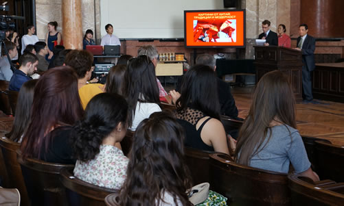 为了加强索非亚孔子学院与索非亚大学的融合,使大学生更好地了解中国语言文化,并为在大学非汉语专业学生中开设汉语选修课做好宣传,保加利亚索非亚孔子学院于2013年6月5日在索非亚大学举办了一场别开生面的“中国文化日”活动。