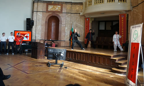 接着,文艺节目演出开始。首先是索非亚玄圭武术队表演的太极拳和武术散打技巧,队员们精湛的武艺博得了全场的阵阵喝彩。索非亚孔子学院中方院长顾维萍教授演唱了中国京剧“穆桂英挂帅”选段“猛听得金鼓响画角声震”,高亢的伴奏与激昂唱腔博得了全场的热烈掌声。索非亚大学中国教师黎明副教授演唱的保加利亚歌曲“马其顿的小姑娘”把这场文化交流盛会推向了另一个高潮,她动听的歌声和准确的保语引起了在场观众的共鸣,赢得了观众的阵阵掌声。另外,索非亚大学和第18中学的学生还表演了“扇子舞”等中国传统舞蹈节目。