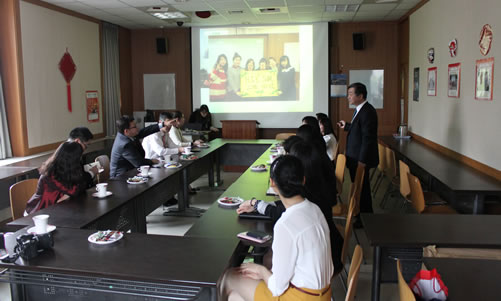 马箭飞副主任一行在孟柱亿、万玉波两位院长的陪同下参观了孔子学院的行政办公室、教务办公室、汉语课专用教室、文化体验室等场所,随后马箭飞副主任与孔子学院的老师们进行了亲切的座谈。孟柱亿院长用PPT向领导汇报了韩外大孔子学院2012年的工作总结及2013年工作开展的情况。在过去的一年中,韩外大孔子学院立足于本校,发挥自身在教学方面的优势,不仅开设了从入门汉语到高级汉语,到HSK各个级别的常规课程,还开设了一门“演话剧学汉语”特色课程,该课程为韩外大孔子学院首创,韩外大孔子学院的教师们将韩国家喻户晓的古典名著《春香传》改编为《春香新传》,作为该课程的教材。《春香新传》用现代常用汉语进行讲述,融入了大量的流行词汇及新词、热词等,即生动有趣,又利于快速提高口语水平。在孔子学院全体教师的努力下,这门课程的教学成果——中文话剧《春香新传》在首尔和北京两地巡演中,取得了巨大的成功。这让韩外大孔子学院更加有动力,有信心做好教材的整理和编写工作,争取早日出版该教材,为更多的汉语学习者服务。