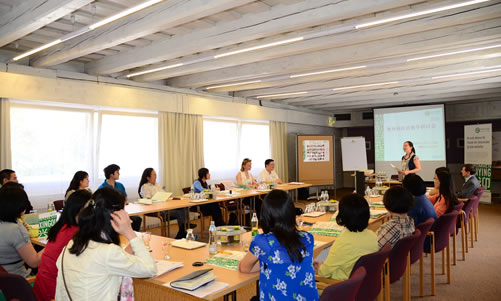 27日上午,维也纳大学汉学系高级讲师李岩介绍了汉学系的对外汉语师资硕士课程,使馆董卫国主任介绍了中国政府教学金以及其他中国对海外汉语教学的支持项目,维也纳大学孔子学院公派教师王珩介绍了HSK考试、孔子学院奖学金和海外汉语教师培训项目,志愿者温蕾蕾介绍了“汉语桥”中文比赛、2013年北京国际学生夏令营和北京外国语大学夏令营,格拉茨大学孔子学院张文莉院长介绍了其“汉语教学走进中学”情况以及在格拉茨地区即将成立三所孔子课堂的情况。