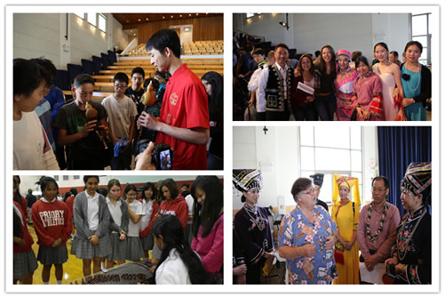 云南少数民族师生精彩的少数民族音乐、舞蹈等表演深深吸引了观众,每个节目之后观众都报以热烈掌声,演出过程中的互动也非常热烈。演出结束之后,学生们纷纷与云南少数民族师生交流并尝试演奏中国民族乐器古筝、葫芦丝、巴乌等。代表团还向各校赠送了中国民族乐器。