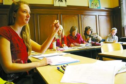 2012至2013学年,学院招收的300多名学生从8岁到70岁不等,共开设了20多个语言班。记者去采访的当日下午,只开设一堂课,而晚上6点则有三个班。“主要是为了方便白领学生下班后学习。”