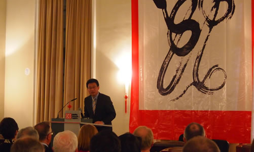 龙腾虎跃,辞旧迎新,我们又迎来了中国最重要的节日——春节。为了酬谢社会各界人士的支持,纽伦堡-埃尔兰根孔子学院特举办了欢庆2013蛇年的新春酒会。2013年2月18日晚上6点半,新春酒会在历史悠久的纽伦堡交通博物馆的大厅里准时开始。出席本次新春招待会的各界来宾阵容强大,有来自本地区及周边地区政商文教各界的200多位知名人士。