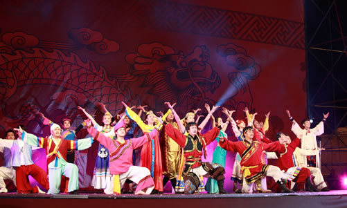 大型舞台演出由罗马大学孔子学院中方院长文铮和国际广播电台孔子课堂负责人杨晓囡用中意双语主持。悠扬的中国民乐、极富表现力的民族舞蹈、精湛的杂技表演及意大利少林寺少儿功夫、罗马舞蹈学院专为中国蛇年排练的现代舞和意大利警察乐队的管乐演奏等,吸引了上万名罗马市民及华人华侨,人群中不时爆发出热烈掌声与喝彩声。尤其是中国杂技团带来的《空竹》和《地圈》表演刚刚在第三十七届蒙特卡洛国际马戏节上获得“金小丑”奖,演员们舒展优雅而又惊心动魄的表演,令观众叹为观止。历时4个小时的舞台艺术表演接近尾声之际,绚烂的焰花绽放在罗马地标建筑斗兽场上空,壮丽景观再次将庆贺活动的气氛推向高潮。