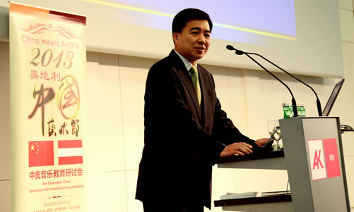 2013年2月4日,中奥音乐教育研讨会在奥地利维也纳联邦总工会会议大厅隆重召开。本次论坛由奥地利联邦教育艺术和文化部、中华人民共和国教育部艺术教育委员会、中国艺术教育促进会、奥地利中国关系促进会、世界音乐艺术教育协会、维也纳大学孔子学院及欧洲中国文化艺术中心联合主办,并得到奥地利联邦共和国驻中华人民共和国大使馆、中华人民共和国驻奥地利联邦共和国大使馆、奥地利联邦总商会、奥地利联邦总工会、维也纳市政府、萨尔茨堡州政府、萨尔茨堡市政府、布尔艮兰州政府和上奥地利州政府的大力支持。作为“相约维也纳——奥地利中国艺术节”的一个重要环节,本次论坛吸引了中奥教育部、政府相关部门代表,中奥音乐教育行业协会、音乐研究机构负责人、中奥两国大专院校、中小学校长、优秀教师、中奥两国校外教育机构、知名音乐机构负责人、媒体记者等近200人汇聚一堂、畅所欲言。