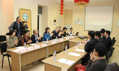 见面会孔子厅举行。首先索非亚孔子学院理事会主席费多托夫做了热情洋溢的讲话。他说:“很高兴索非亚大学有了这样一个孔子学院,可以使我们不懈努力,宣传中国文化,拉近中保距离。”