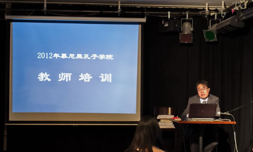 近年来,海外汉语学习的需求不断增长。为提高德国本土汉语教师的授课水平,进一步推广先进的汉语授课理念、方法及优秀的汉语教材,慕尼黑孔子学院于2012年10月26日至28日,在当地举行了为期三天的汉语教师培训。培训包括汉语语音、词汇、语法、汉字教学等专题讲座;《长城汉语》、《快乐汉语》两套教材的培训介绍;微格教学以及示范课分析等多方面内容。另外,培训特别注重教师的教学实践应用。参加培训的教师需现场进行分组教学设计,并向培训专家提交汇报教案。