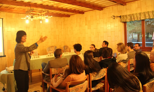 孔子学院邀请了北京外国语大学中文学院副院长丁安琪副教授、刘继红副教授、孔院中方院长齐白桦副教授一同为匈牙利本土汉语教师进行培训。丁安琪对汉办的材资源做了详细的专题讲座,并就课堂活动与学员们展开了深入的交流。之后,中文学院副教授齐白桦、刘继红先后围绕《匈牙利汉语课本》、《新实用汉语课本》、《快乐汉语》等教材和行了集中培训,与学员们就每套教材的特点、使用、教学方法等展开热烈讨论,进行深入的经验交流。培训期间,学员们都非常认真准备教案,于9月23日采取了模拟课堂教学的方式进行了培训成果展示,充分展现出中国汉语教师和本土汉语教师各自不同的教学风格。