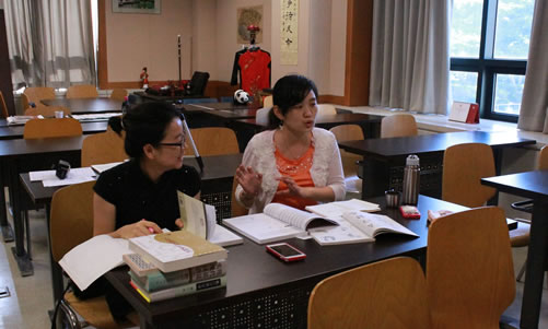 在接下来的正式授课过程中,三位志愿者教师积极备课,通过各种方法寻找课堂有关补充材料,认真做PPT,积极与学生沟通。同时,她们也坚持在每节课结束以后撰写课堂日志,总结出本节课的优点和出现的失误。在此期间,万玉波院长也十分重视三位教师的课堂教学,多次去听课,并在课后给她们有针对性的指导,三位志愿者教师均表示受益匪浅。万院长和于老师一致认为,通过这段时间的努力,三位教师的授课已经有了很大的进步,通过更多的课堂实践,她们会越来越驾轻就熟。相信通过全体教师的共同努力,韩外大孔子学院的汉语教学事业会蒸蒸日上,永葆活力!