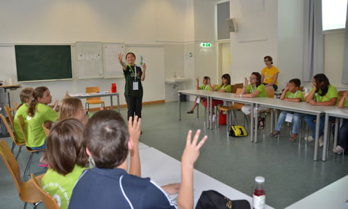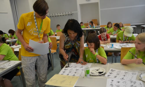 维也纳大学孔子学院从2010年开始就积极参与“儿童大学”,这是奥地利各地每年暑期普遍开展的一项少儿科学文化普及活动,旨在让孩子们从小就接受大学校园的熏陶,接近科学和科研,为将来进入高等学府做好准备。前二年维也纳大学孔子学院提供的中国主题的课程非常受欢迎,在今年再次精心设计推出中国书法绘画、中国游戏、中国数字、中国美食和中文表演五门课。