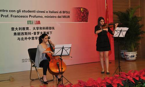 交流会上,普罗夫莫部长在我校领导和教师的陪同下,观看了孔子课堂学生的汉语学习汇报演出,以及我校学生用意大利语表演的歌曲及情景剧。活动在轻松、欢乐的氛围中结束,给部长先生及所有参加活动的师生留下了深刻的印象。通过此次活动,来访的意大利客人进一步了解了我校意大利语和对外汉语教学特色,为加强我校同意大利教育机构间的合作起到了促进作用。