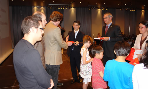 比中协会主席范汉思( Hans Van Duysen)代表比中协会和布鲁塞尔孔子学院致欢迎词,中国驻比利时大使廖力强出席了结业仪式并对顺利完成学业的学员表示祝贺。张国宪院长宣布成绩并总结了该学年的教学情况。使馆教育处王鲁新参赞和文化处向世海参赞出席了毕业典礼,教育处并为获得成绩优秀奖的学员赠送了精美的奖品。