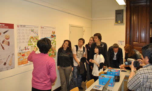 在欧洲本土多媒体展的教室,本院教师李春玲引导学生体验Tell me more 和Rosetta Stone汉语学习软件,并听取学生对本土软件的体验感受,为改进教学和改进产品积累素材。