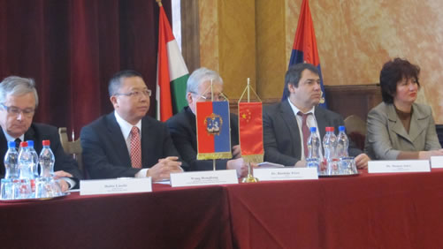 上午的活动在市政府会议厅举行,埃格尔市市长Laszlo Habis 首先致辞,他希望罗兰大学孔子学院不仅在这所中学开展汉语教学,还希望在艾格尔大学开办汉语教学。随后,国会议员LUKACS讲话,对“中国日”活动给予了高度评价。