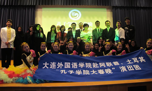 2012年3月7日,扎耶德大学孔子学院在扎耶德大学阿布扎比新校区女生区粉红色礼堂举办“孔子学院大春晚”巡演活动。由汉办胡志平副主任和大连外国语学院汉语国际推广基地办公室李凡副主任带队的大连外国语学院演出团带来精彩的演出。阿联酋高等教育及科学研究部部长、扎耶德大学校长谢赫•纳哈扬和扎耶德大学副校长苏莱曼•杰思、中国驻阿联酋大使馆临时代办王永召、汉办副主任胡志平、阿联酋侨领和新华社、中央电视台、经济日报、凤凰台和当地著名媒体的记者等300余人观看了表演。