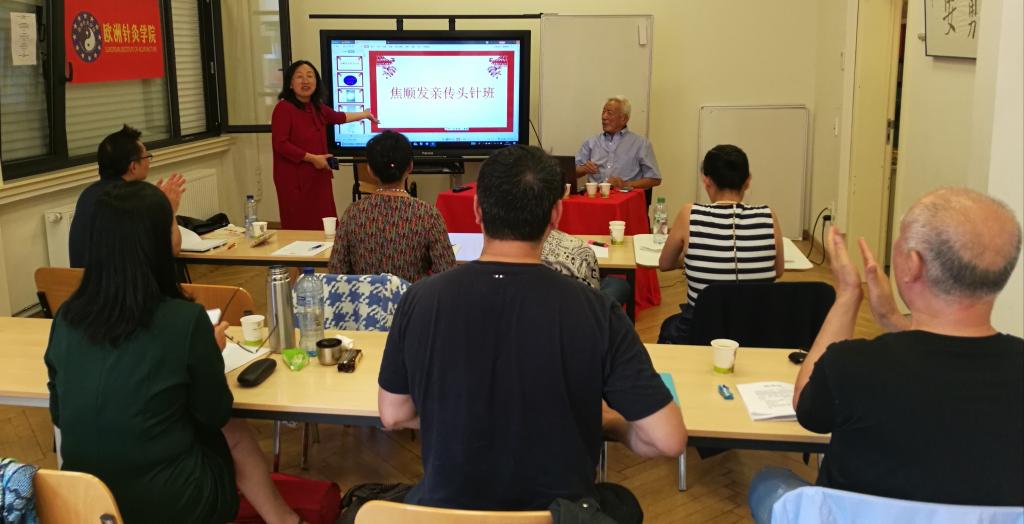当地时间8月9日至11日三天,在布鲁塞尔孔子学院举办了由欧洲针灸学院主办、布鲁塞尔孔子学院协办的“头针疗法中医研习班”。研习班由欧洲针灸学院院长陶丽玲医师主持,特邀著名的头针疗法大师焦顺发教授主讲。
