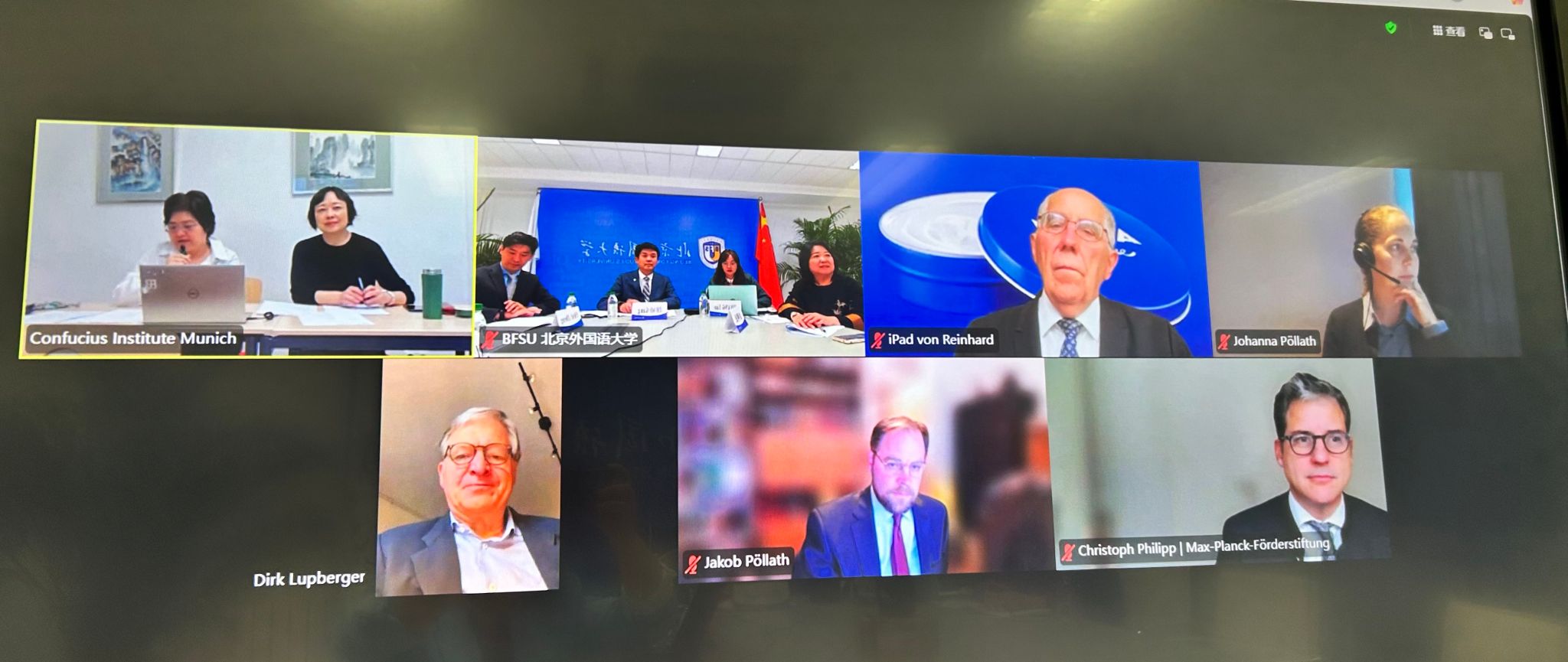 当地时间10月16日,慕尼黑孔子学院(以下简称“慕尼黑孔院”)2025年理事会议通过线上形式举行。我校党委常委、副校长赵刚,慕尼黑东方基金会捐赠人、慕尼黑孔院理事长莱因哈特·帕拉特(Prof. Dr. Reinrard Pöllath),SKW Schwarz事务所合伙人、孔院理事克里斯托夫∙菲利浦(Dr. Christoph Philipp),慕尼黑东方基金会理事、孔院理事雅格布∙帕拉特(Jakob Pöllath),慕尼黑孔院顾问迪尔克∙鲁普贝尔格尔(Dr. Dirk Lupberger),马克斯·普朗克推广基金会负责人约翰娜∙帕拉特(Johanna Pöllath),孔子学院工作处前任处长、孔院理事金利民,孔子学院工作处副处长(主持)翟峥等出席会议。