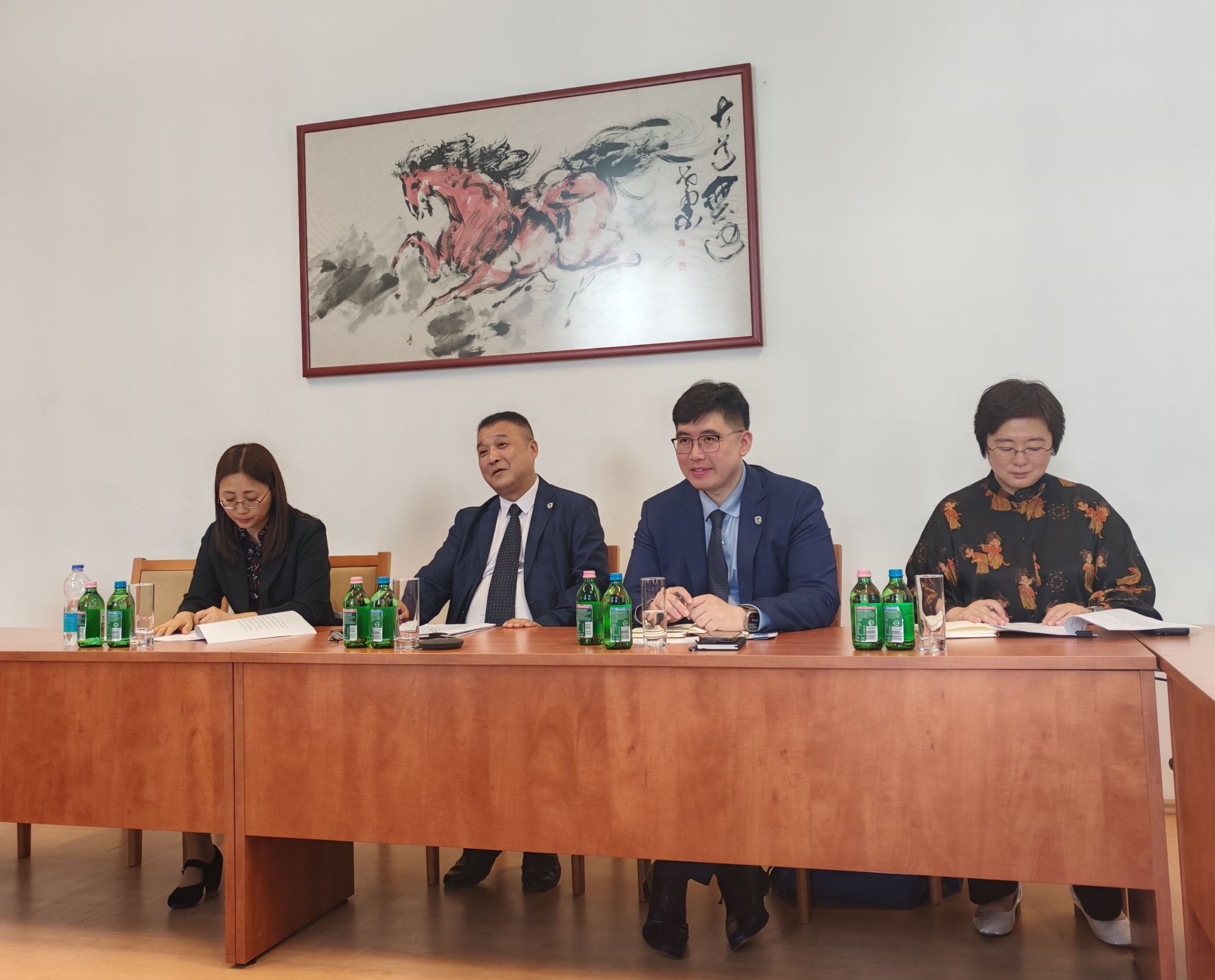 郝清新副校长致欢迎辞。他对北外代表团的到访表示热烈欢迎,并回顾了近年来两校合作的丰硕成果。他特别提到2024年访问北外时的愉快经历,对北外长期以来为罗兰大学孔子学院提供的支持表示感谢。郝清新表示,孔子学院不仅是语言教学的平台,更是中匈文化交流的重要纽带,随着中匈关系的深入发展,孔子学院的角色愈发重要,期待未来能与北外在学术合作、师生交流等方面取得更大突破。