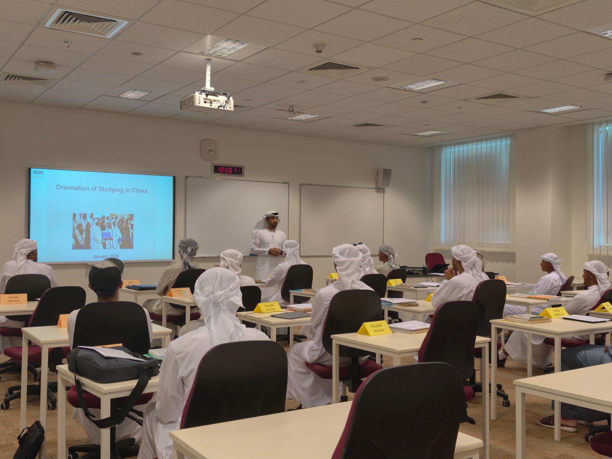 当地时间1月10日,扎耶德大学孔子学院与阿联酋总统事务部奖学金办公室(以下简称SCO)合作开展的第三期中文课程正式开课。作为双方持续推进的合作项目,本期课程在教学时长和内容设置上进一步优化,围绕SCO赴华留学培养计划有序开展。