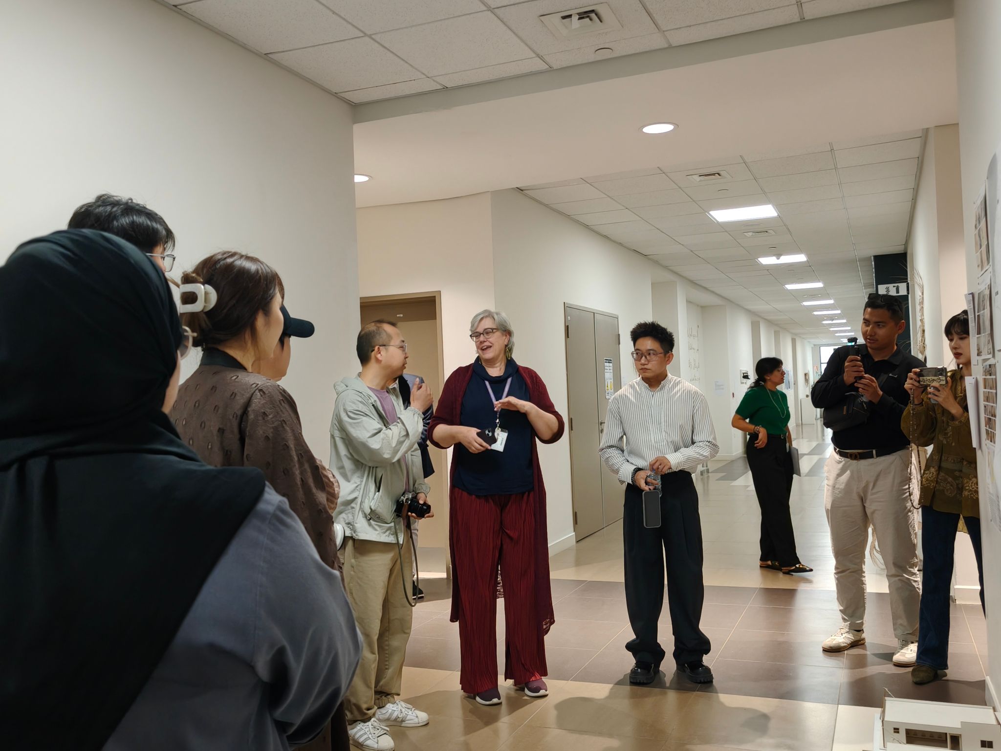 访问期间,代表团参观了扎耶德大学艺术与创意学院,与扎大师生就艺术创作经验与视角进行了面对面交流。中阿双方师生还围绕艺术教育、青年艺术家培养等议题展开深入探讨,并分享了此前在相关艺术大赛中获奖作品的创作理念。双方一致认为,通过艺术实践与学术互动,能够进一步增进两国青年艺术家之间的理解与合作。